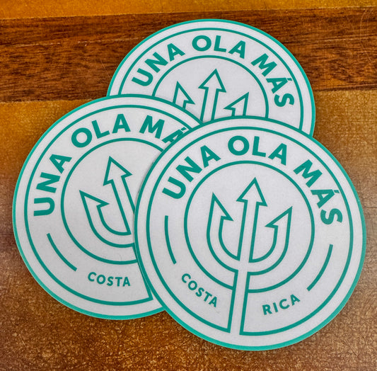 100% donated*Costa Rica Una Ola Más 4" white/teal sticker